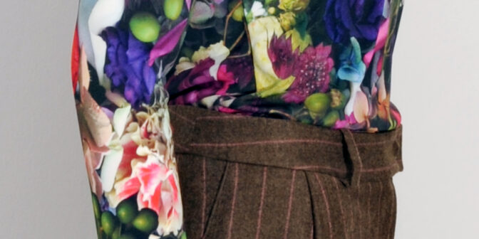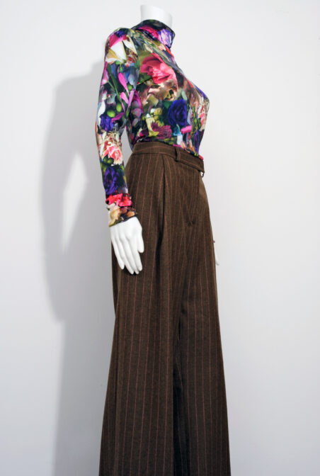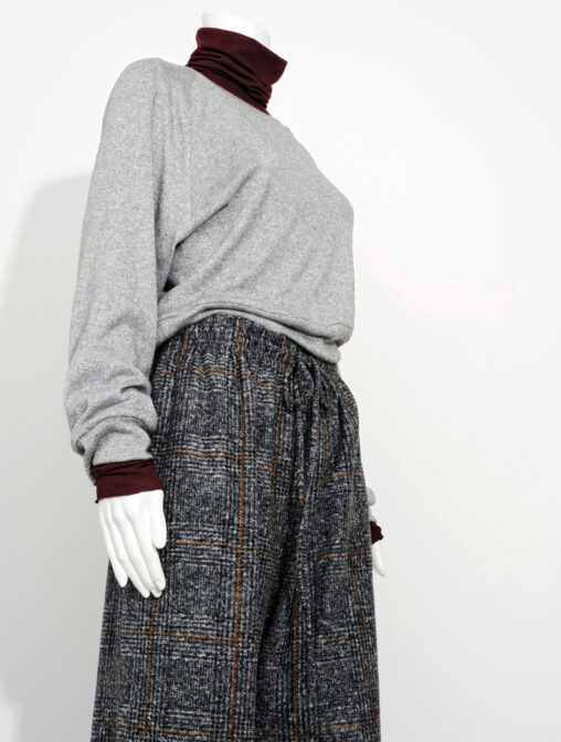 Rolli aus Seide/Viskose € 120, Hose aus Wollflanell € 210
