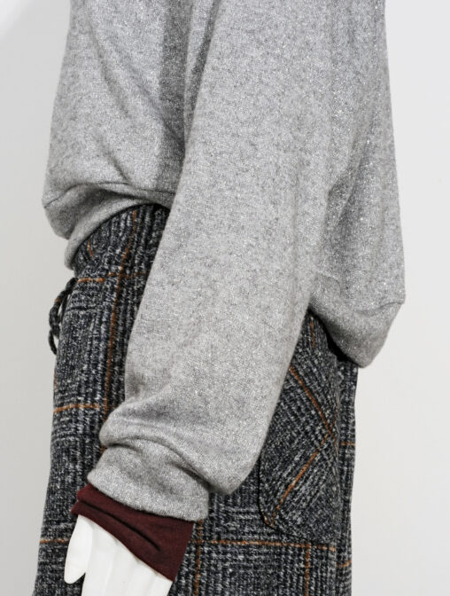 Glitzer-Sweater aus Viskose/Lurex € 160, Rolli aus Wolle € 120, Sweatpants aus Wolljersey € 190