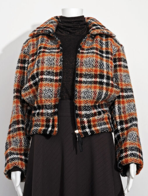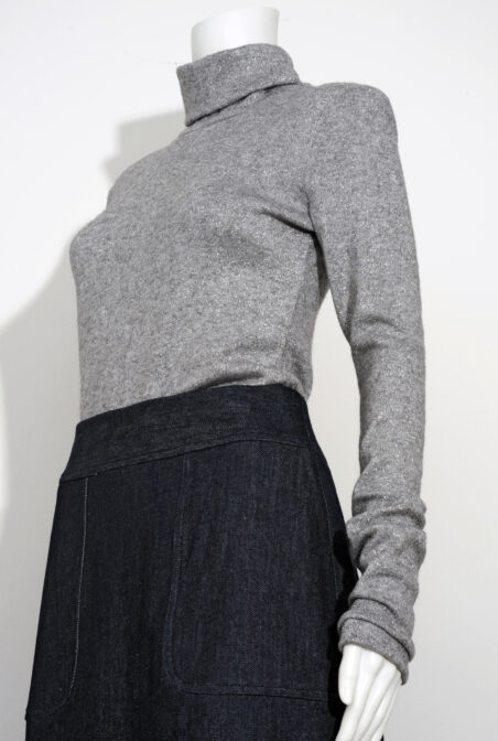 Jacke aus Wolle € 410, Rolli aus Viskose/Lurex € 120, Rock aus Cool Wool € 210